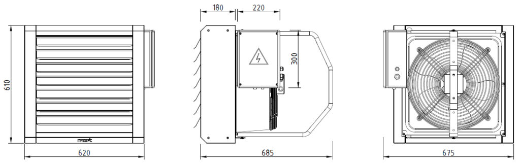 Габариты тепловентилятора ГРЕЕРС серии ЕС-21